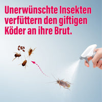 Sobald die Schädlinge in Kontakt mit dem Insekten-Spray getreten sind, wird der giftige Köder aufgenommen und an die Brut verfüttert! Durch diese effektive Methode und eine regelmäßige Anwendung können Sie sich langfristig vor unerwünschten Insekten und Spinnen schützen!